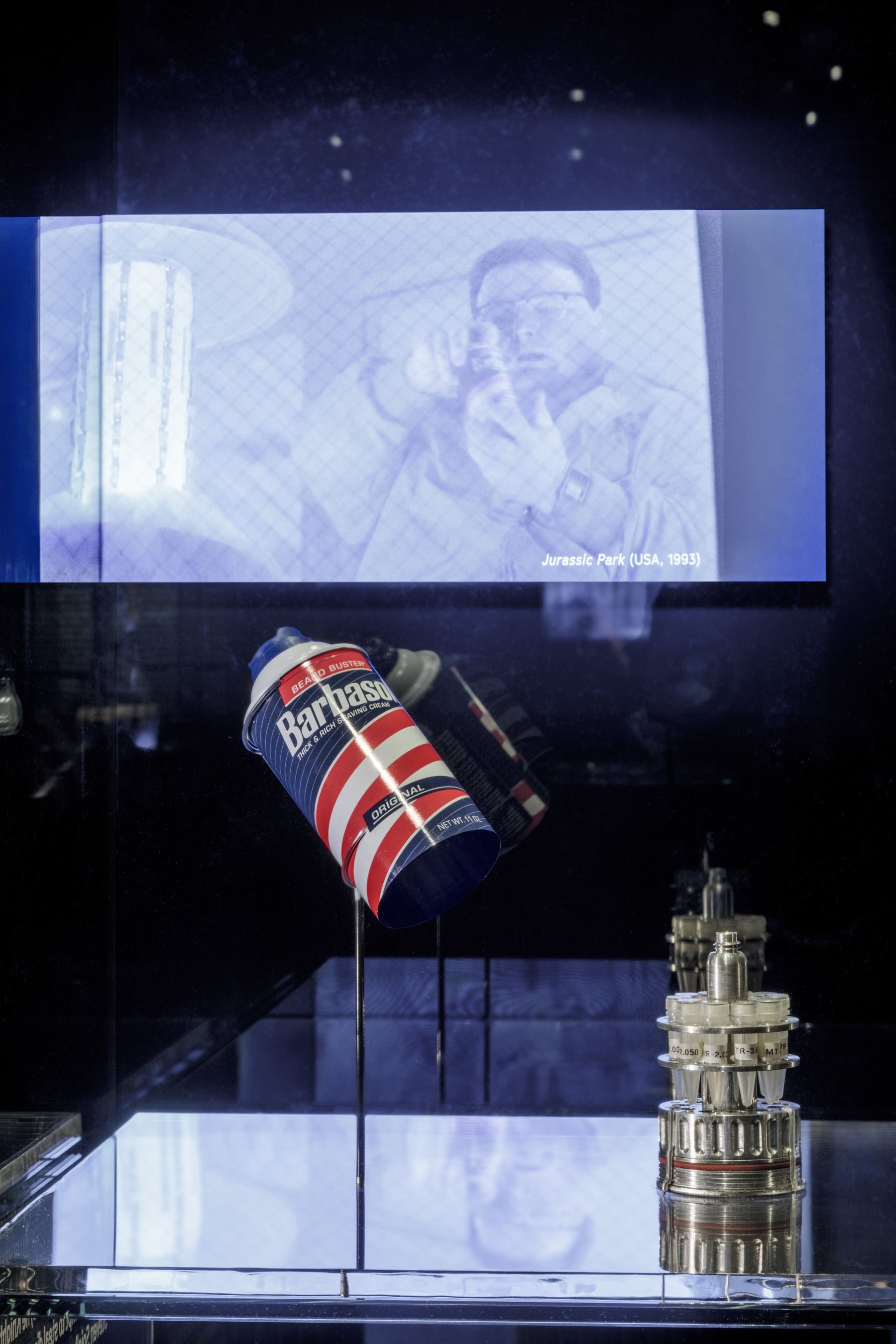 In Inventing Worlds and Characters: Encounters, objects such as the Aries-1B lunar landing shuttle from 2001: A Space Odyssey (1968), a costume worn by Laurence Fishburne as Morpheus in The Matrix Reloaded (2003), a prosthetic suit worn by Doug Jones as the amphibian man in The Shape of Water (2017), and porg puppets and animatronics from Star Wars: Episode VIII – The Last Jedi (USA) offer unique opportunities for close encounters with fantastical elements previously experienced only onscreen.